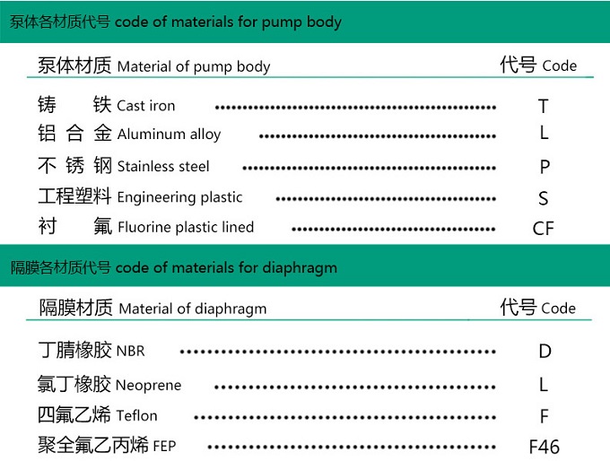鋁合金氣動隔膜泵材質(zhì)說明: